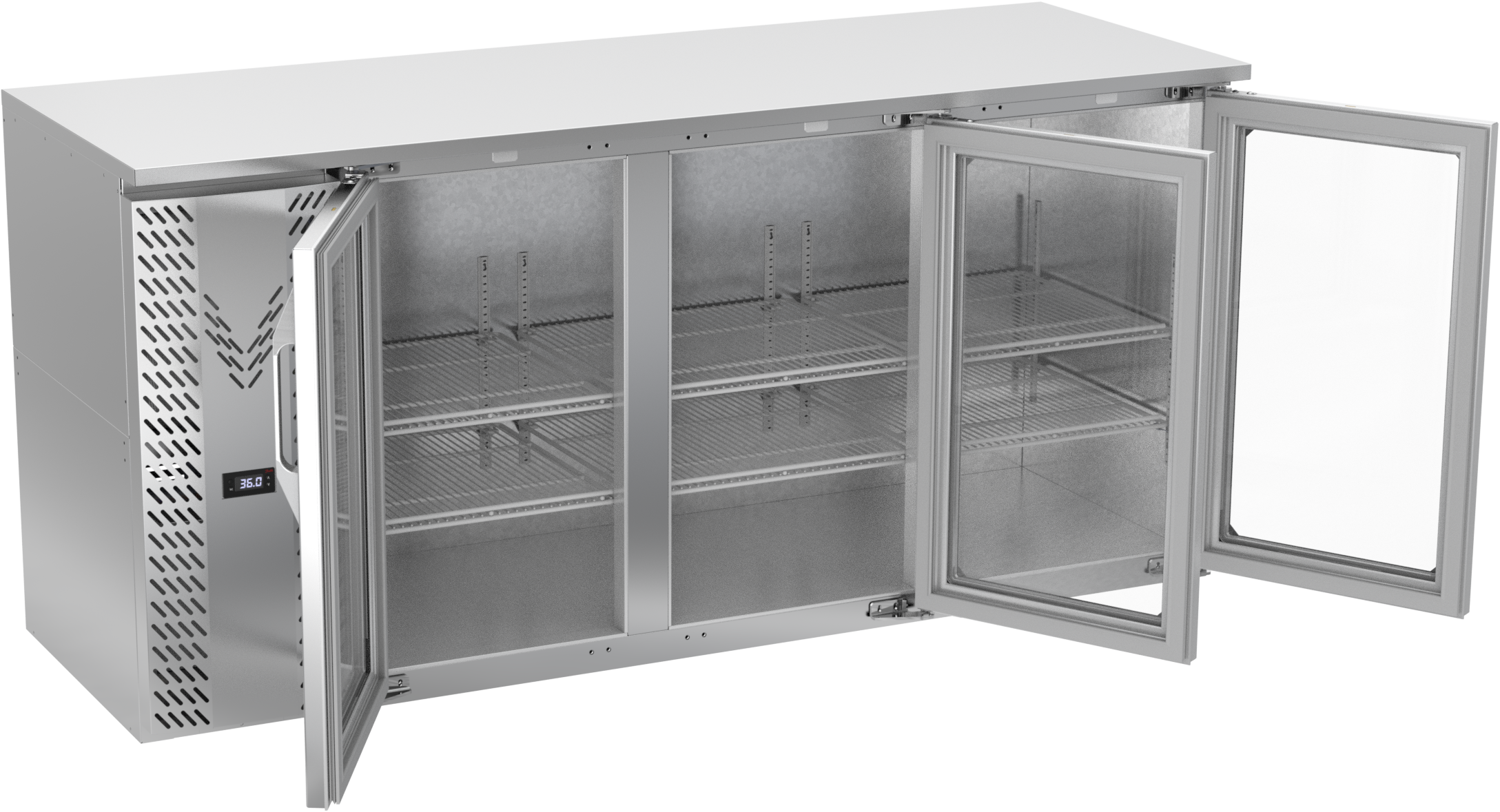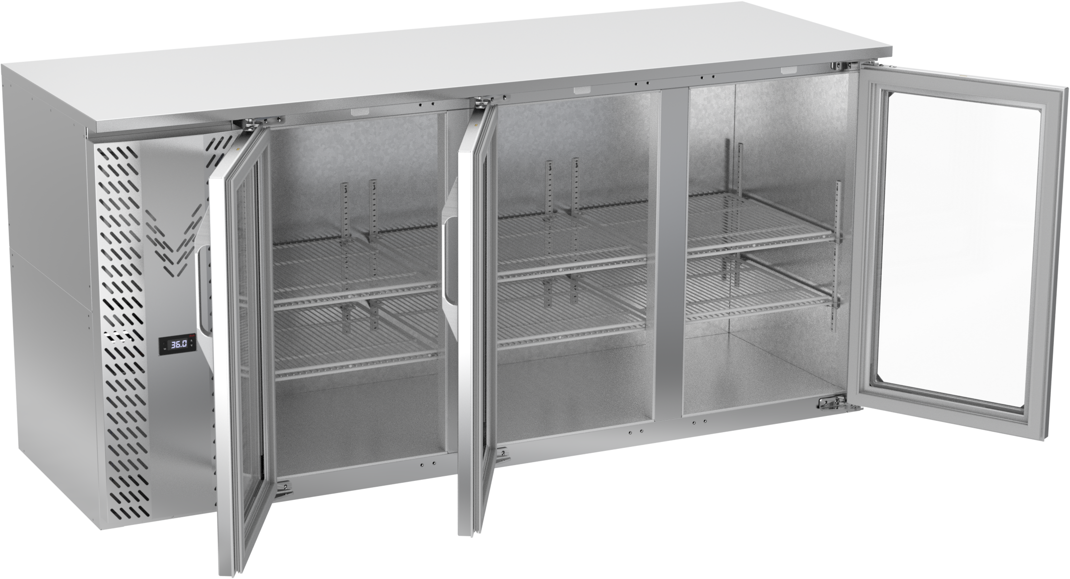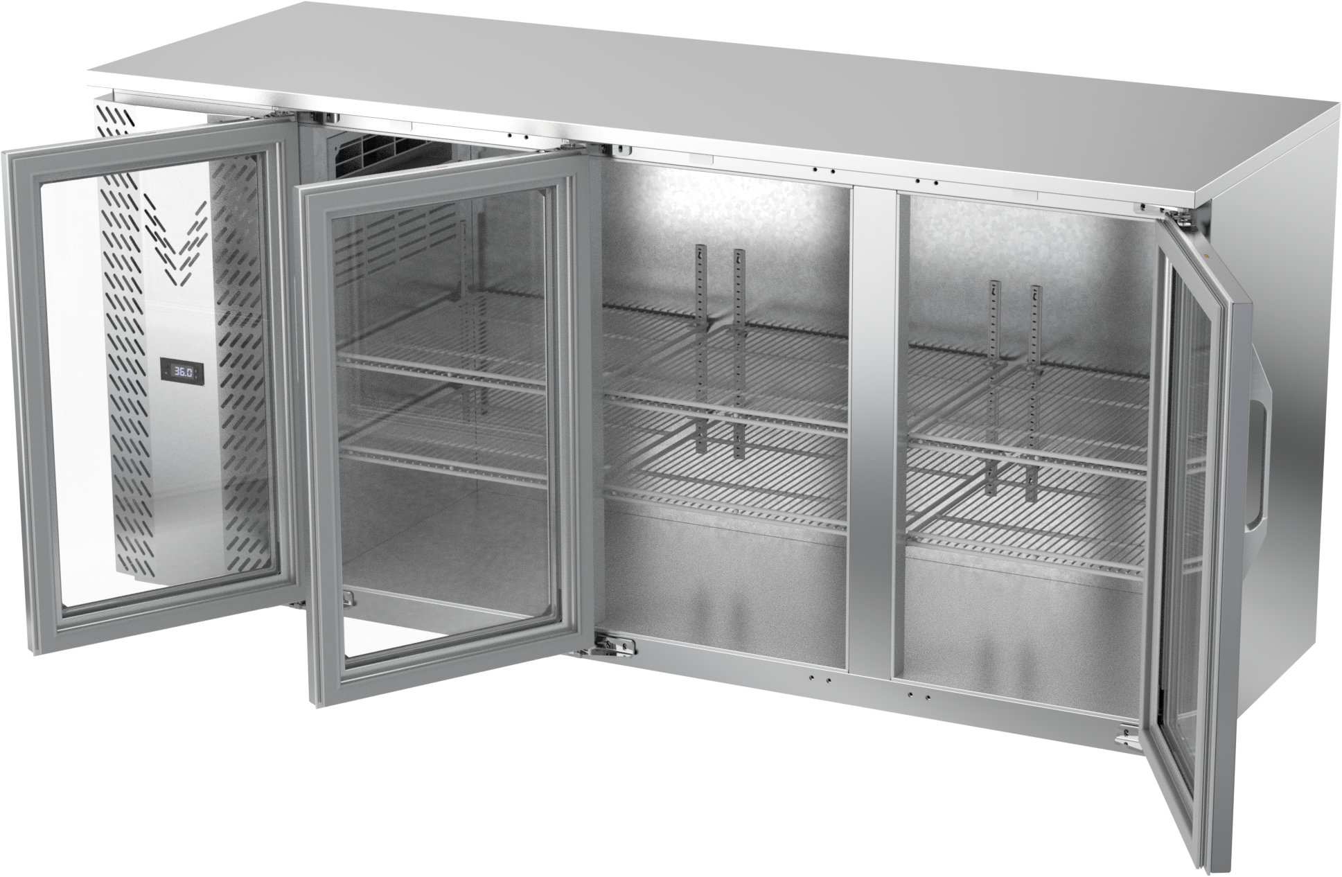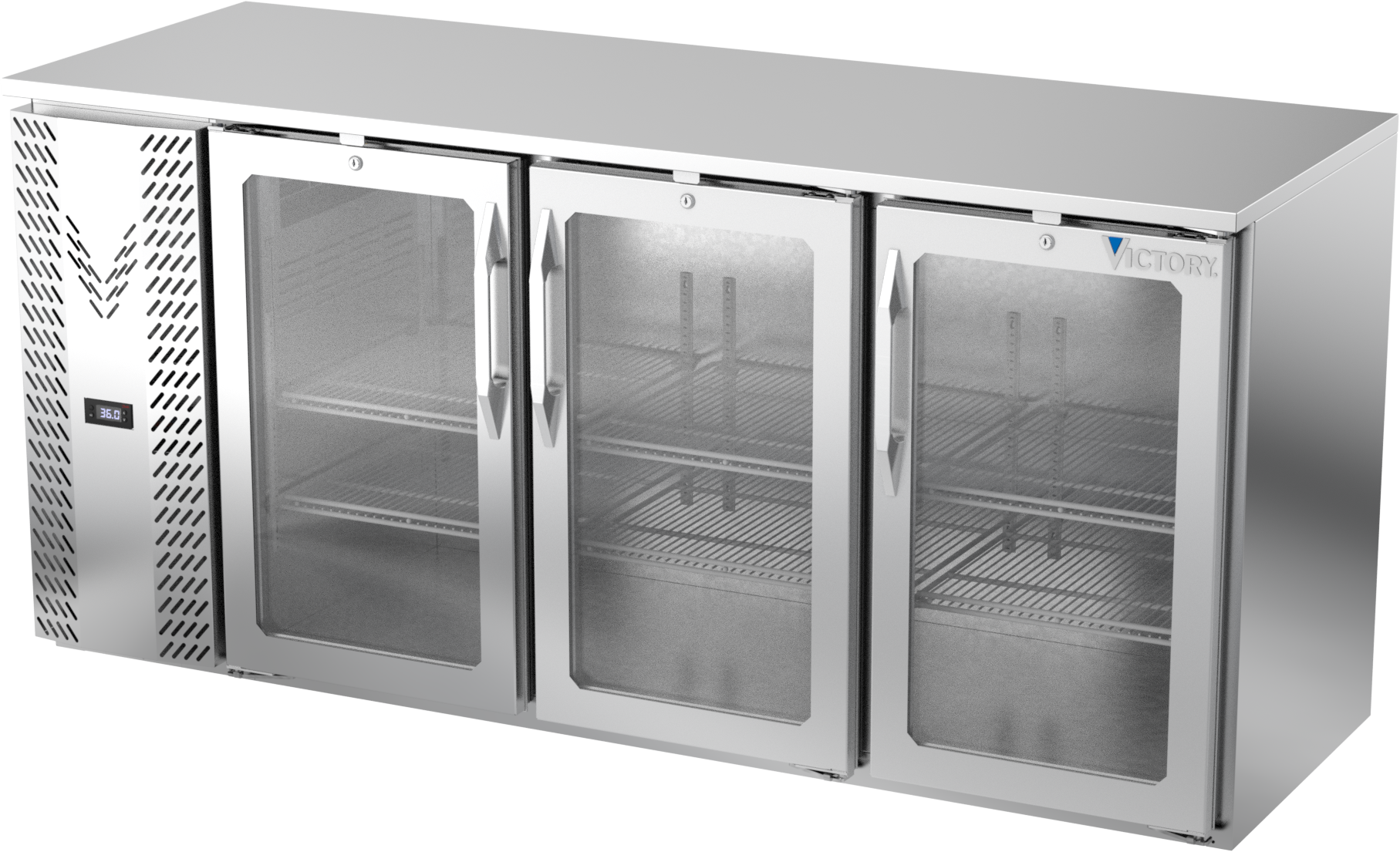 VBBN72HC-G-S | 72" Narrow Depth Glass Doors Back Bar in Stainless Steel