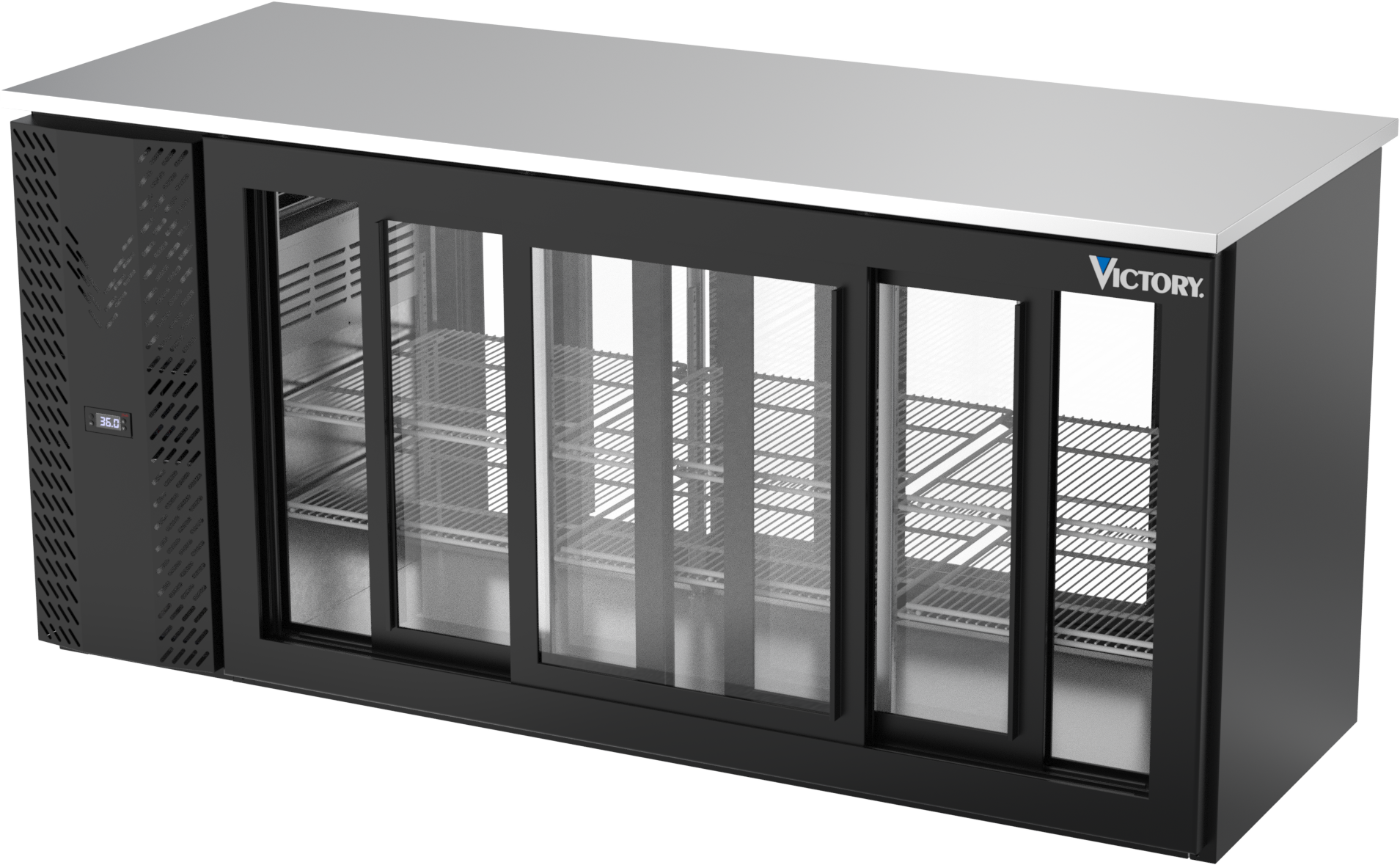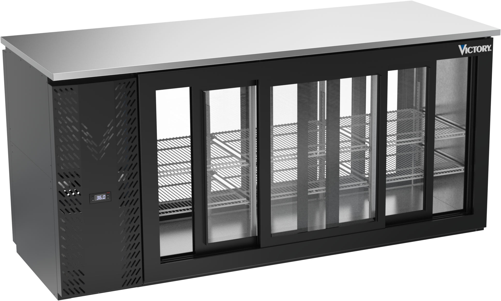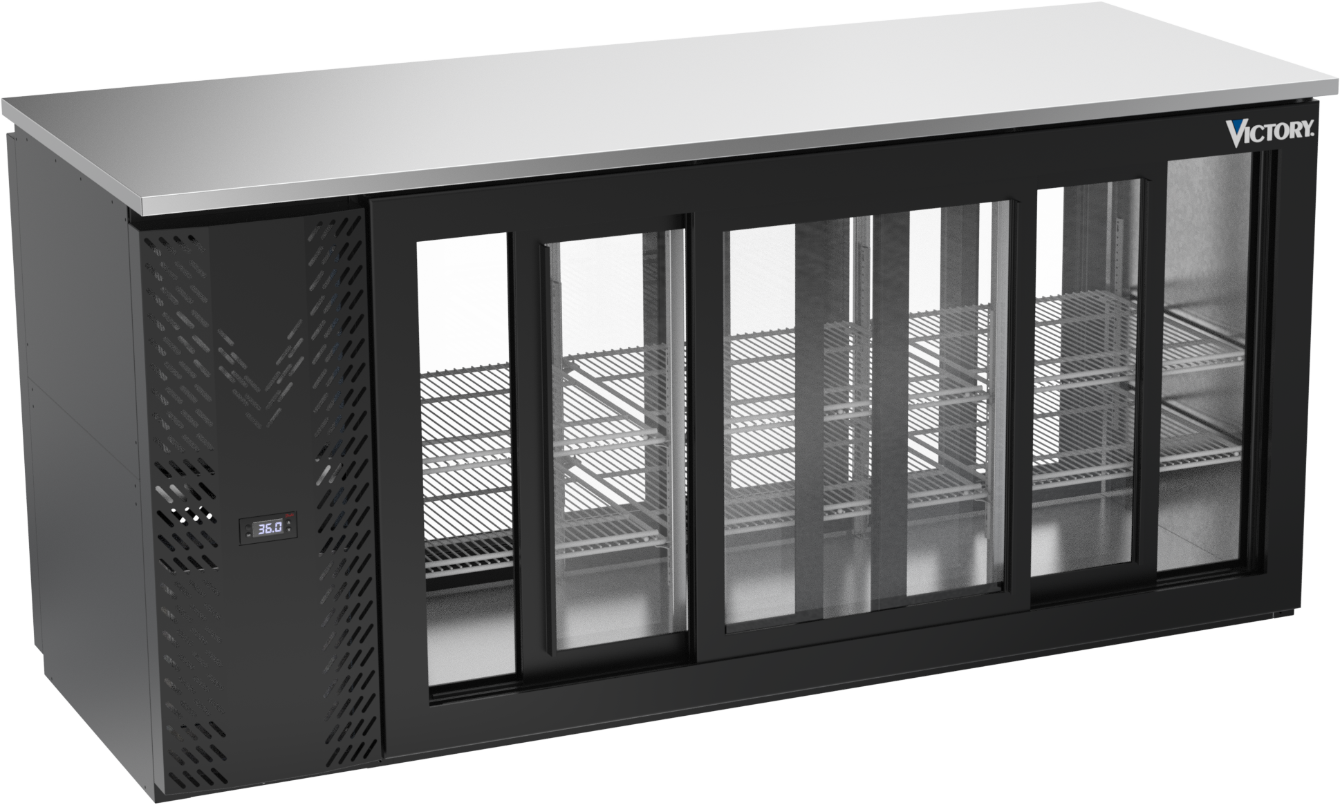 VBBN72HC-GS-PT-B | 72" Narrow Depth Sliding Glass Doors Pass-thru Back Bar in Black
