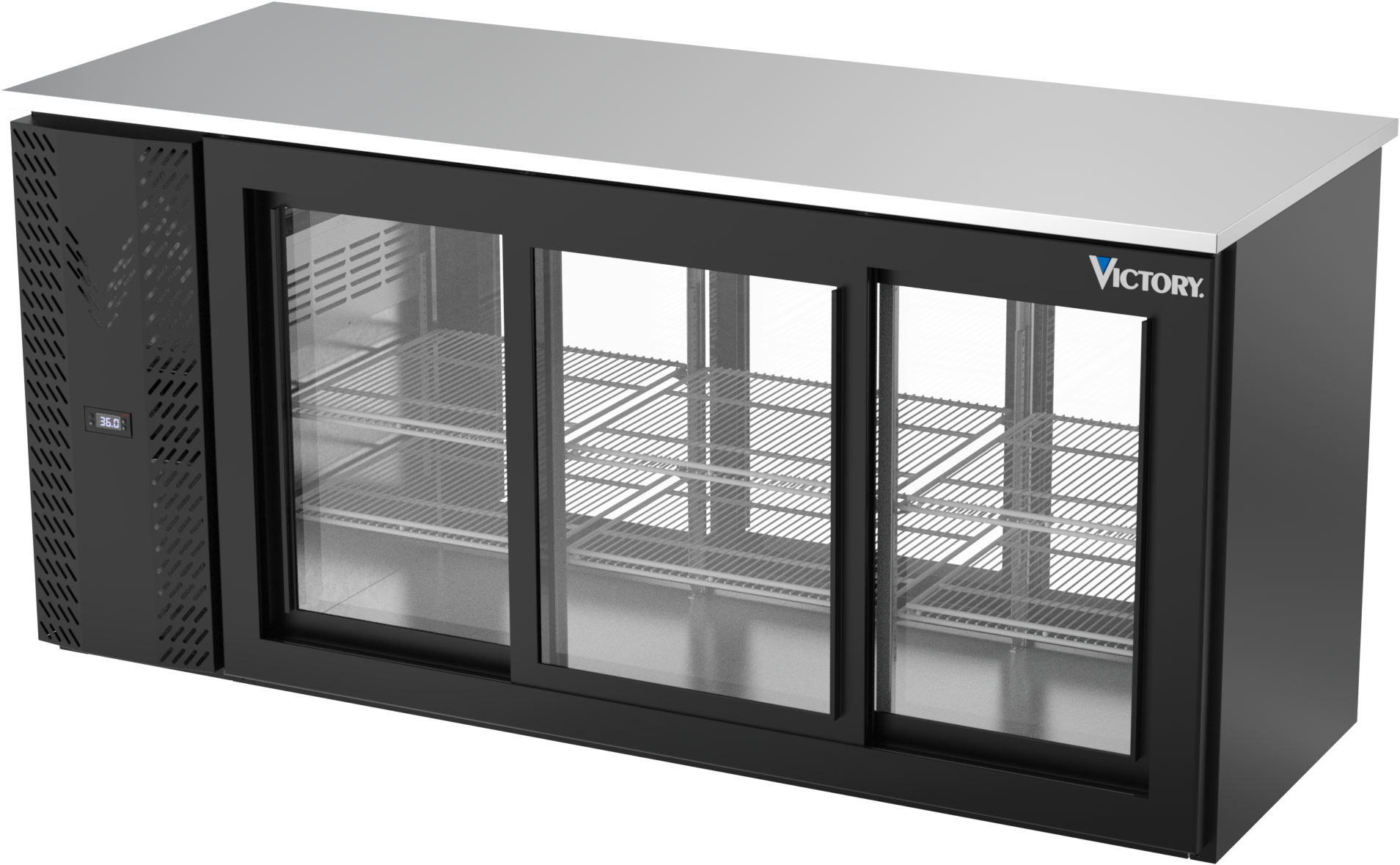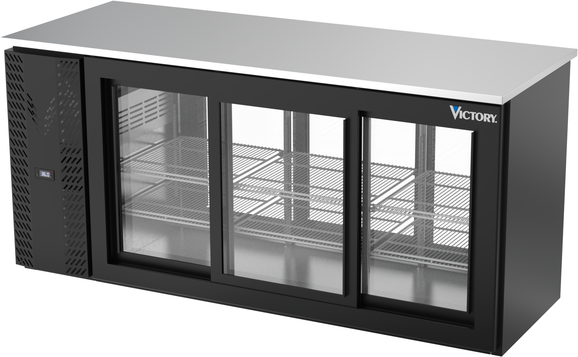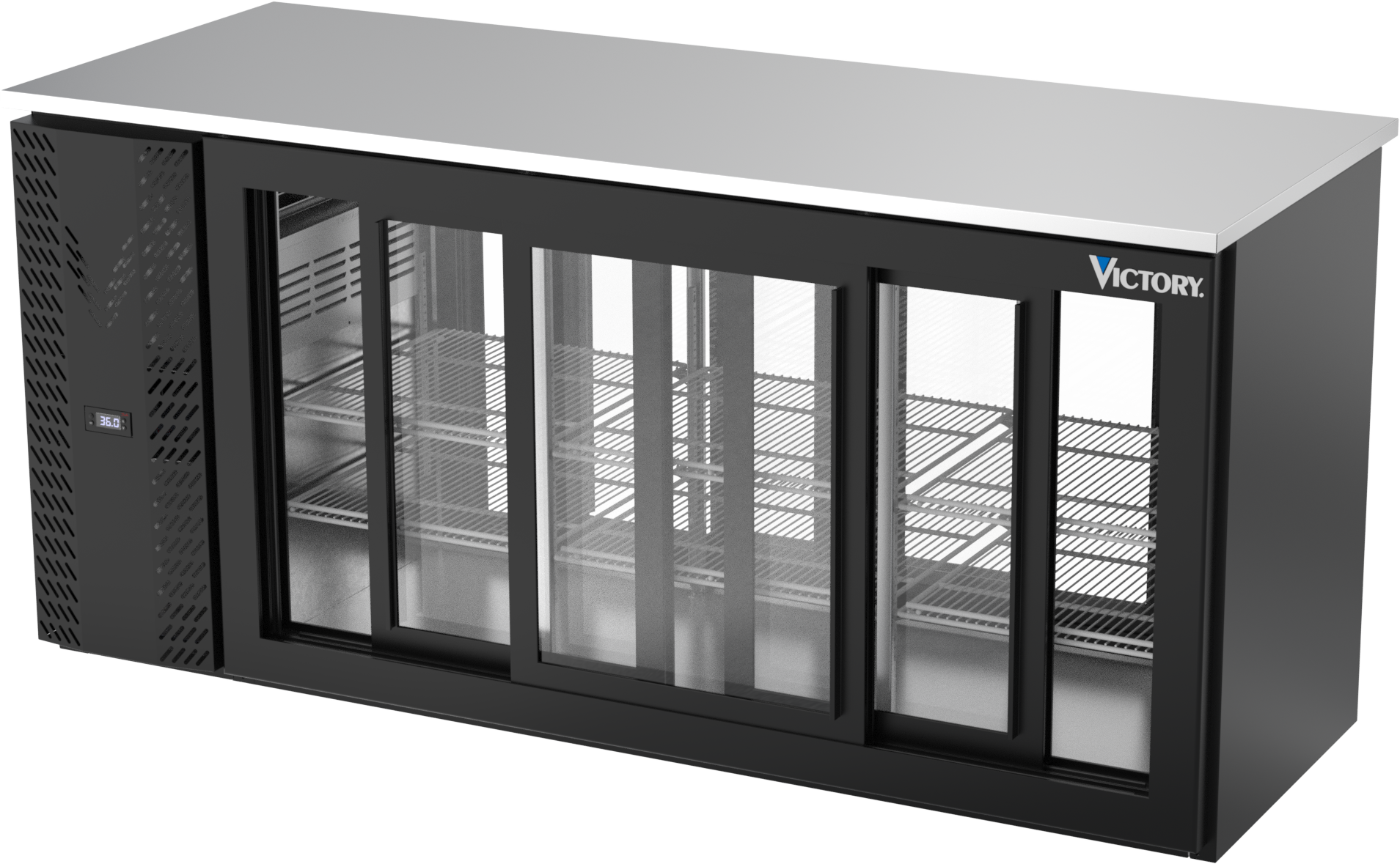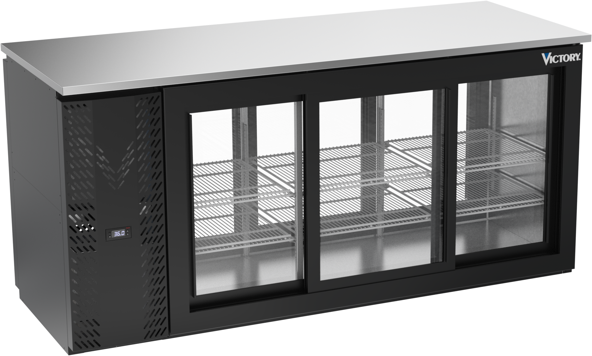 VBBN72HC-GS-PT-B | 72" Narrow Depth Sliding Glass Doors Pass-thru Back Bar in Black