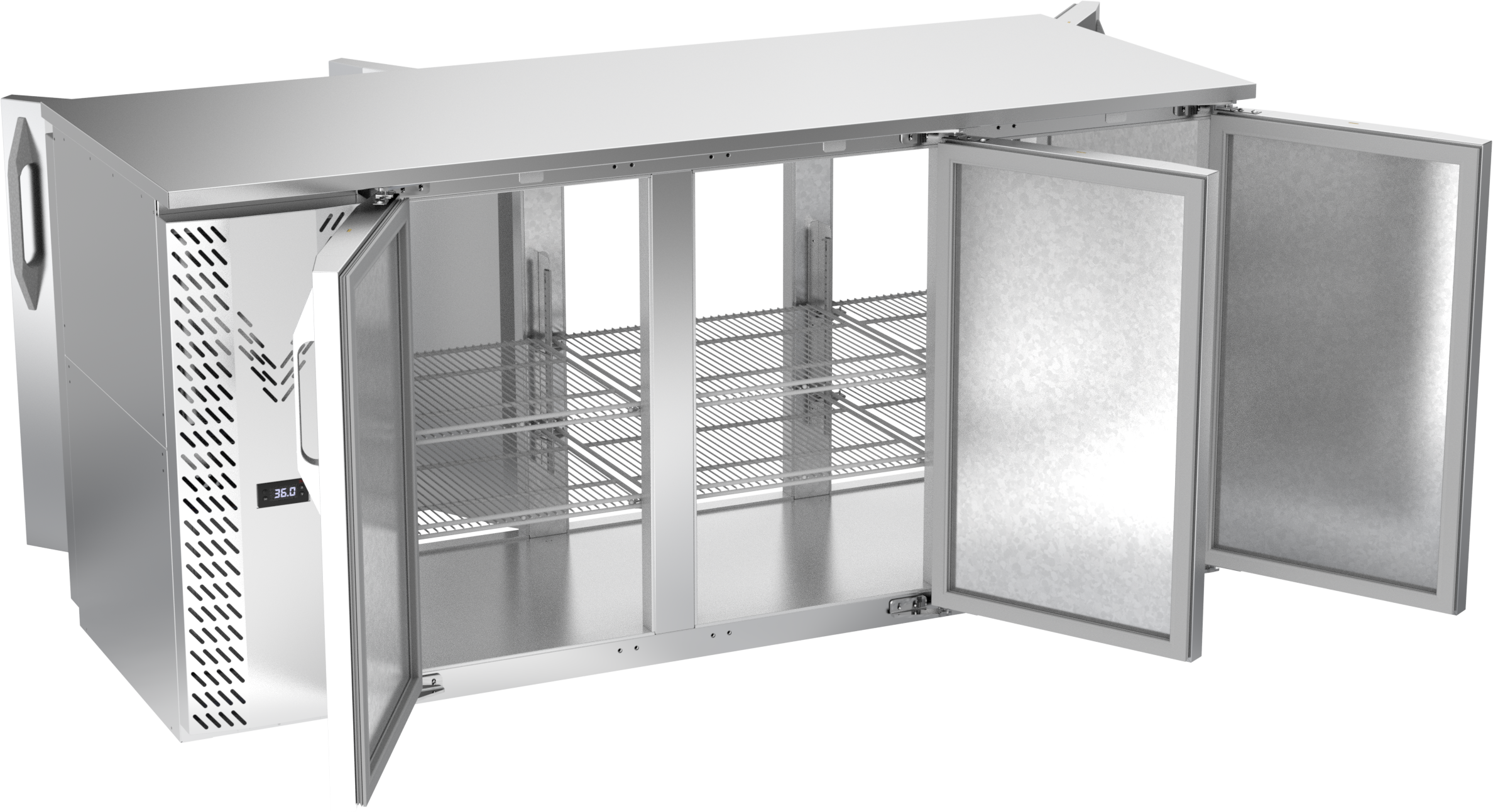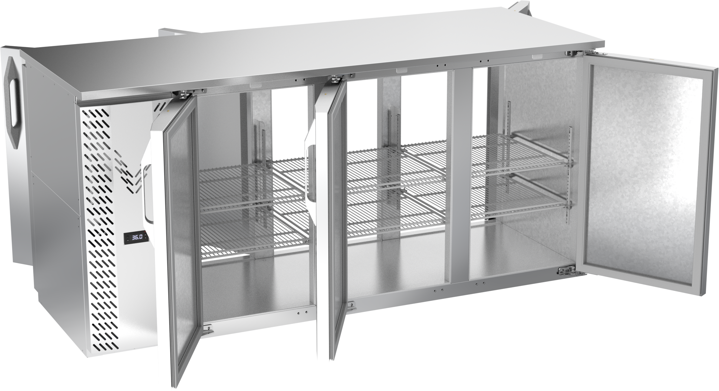 VBBN72HC-PT-S | 72" Narrow Depth Solid Doors Pass-thru Back Bar in Stainless Steel