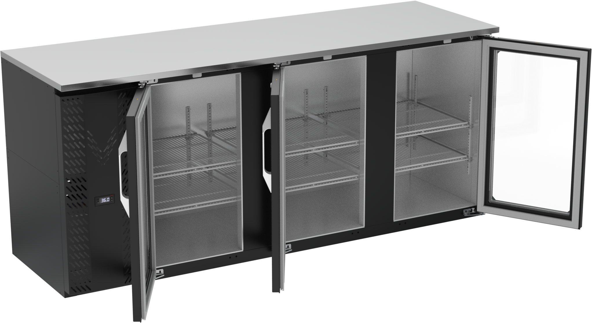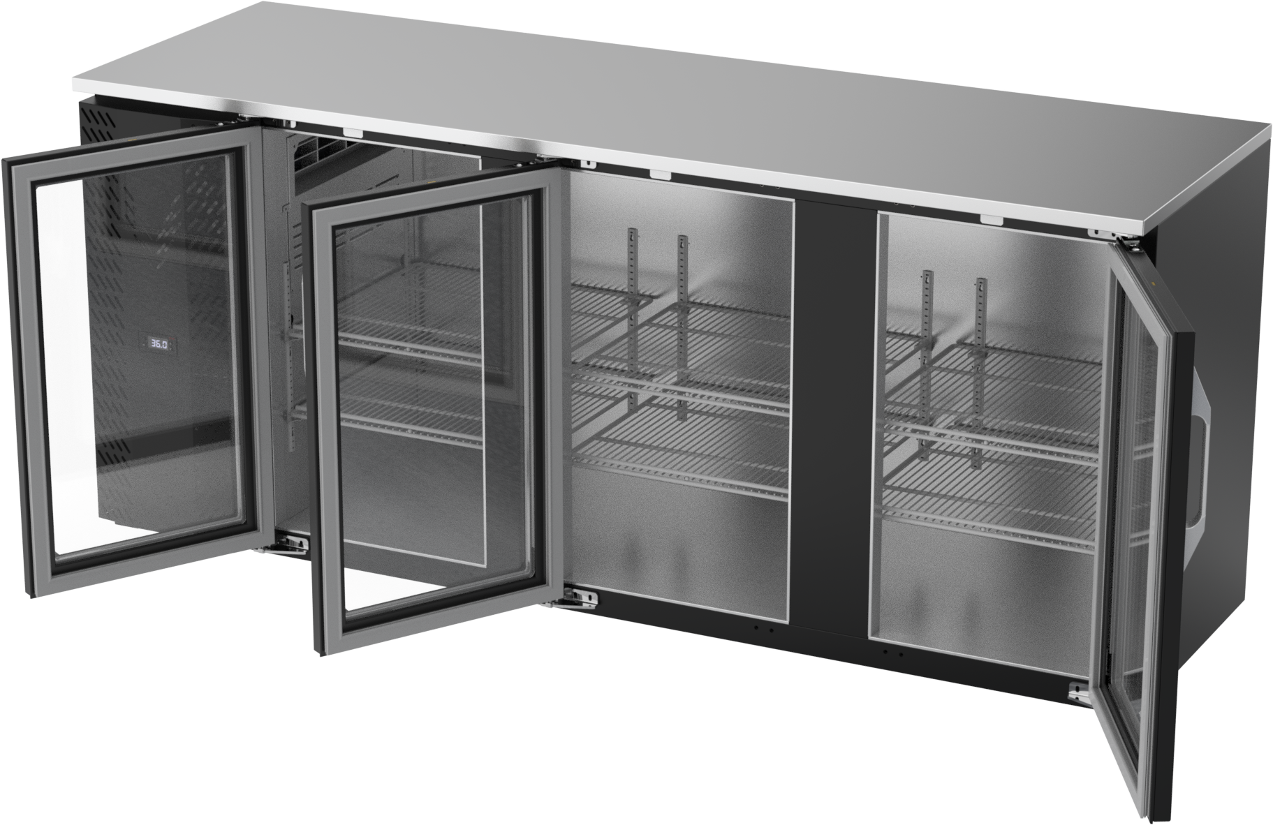 VBBN78HC-FG-B | 78" Narrow Depth Glass Doors Food Rated Back Bar in Black