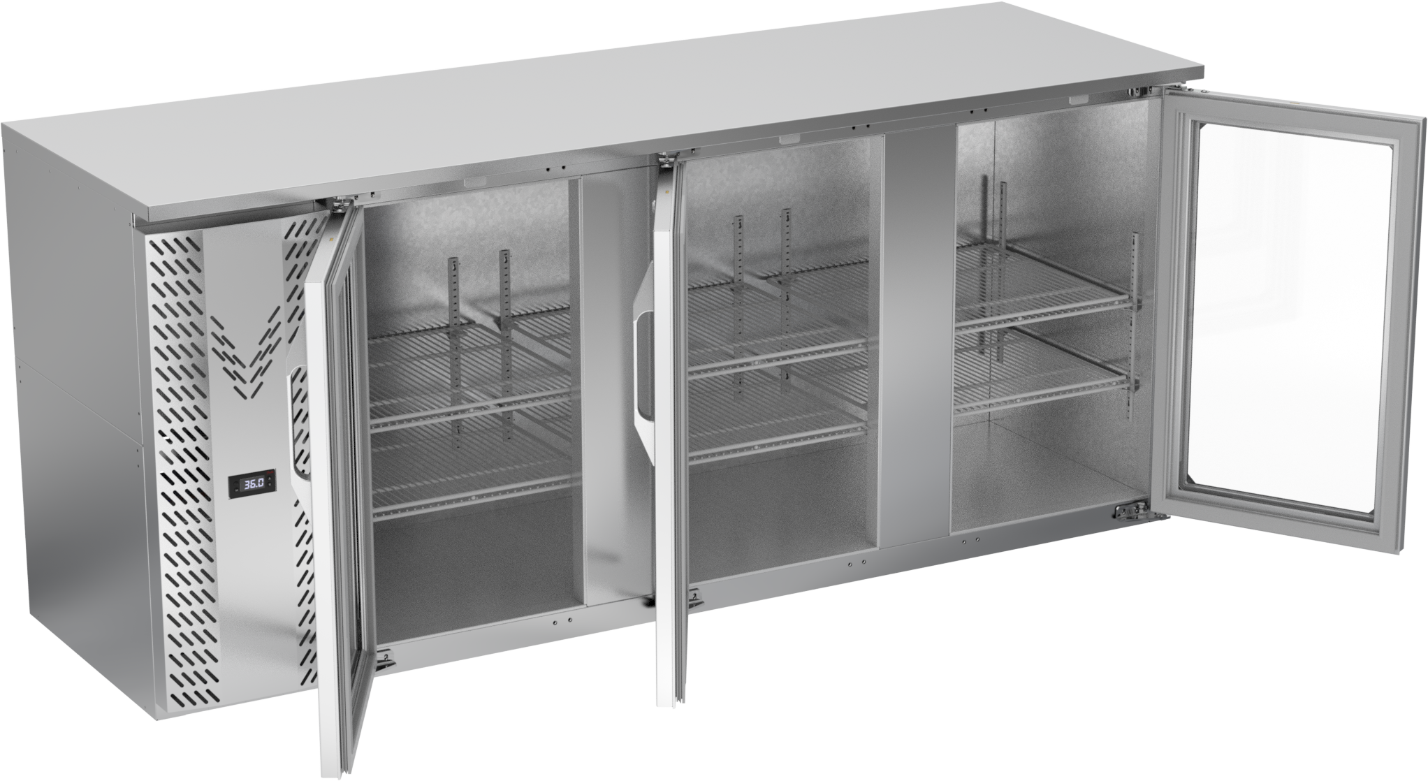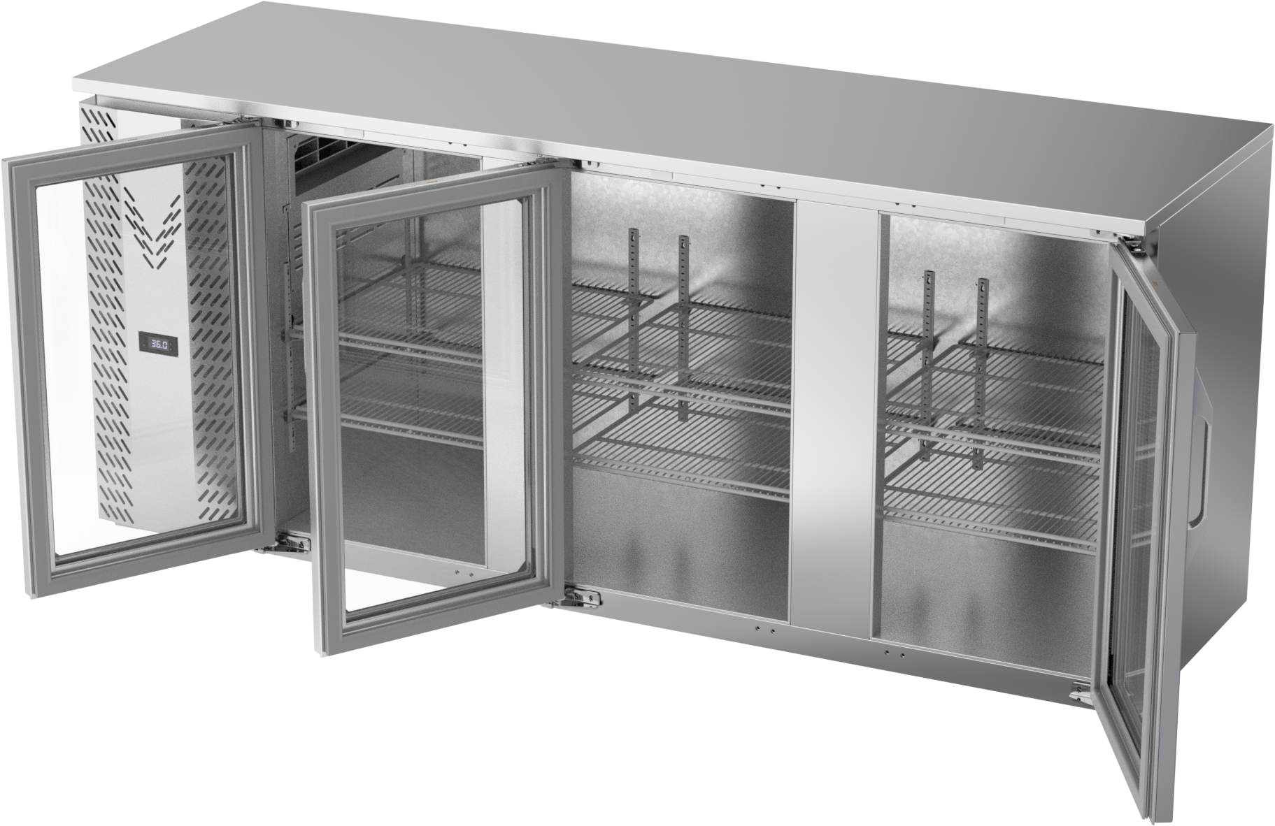 VBBN78HC-G-S | 78" Narrow Depth Glass Doors Back Bar in Stainless Steel