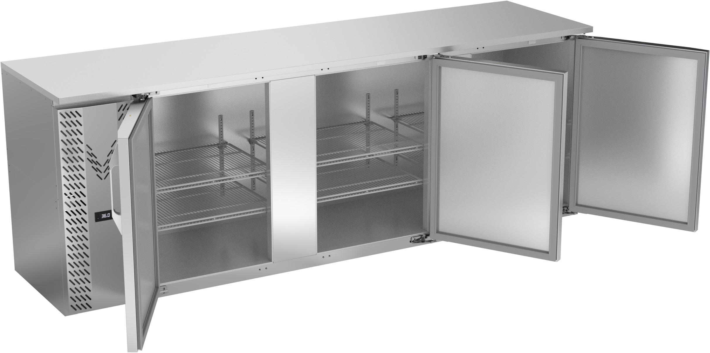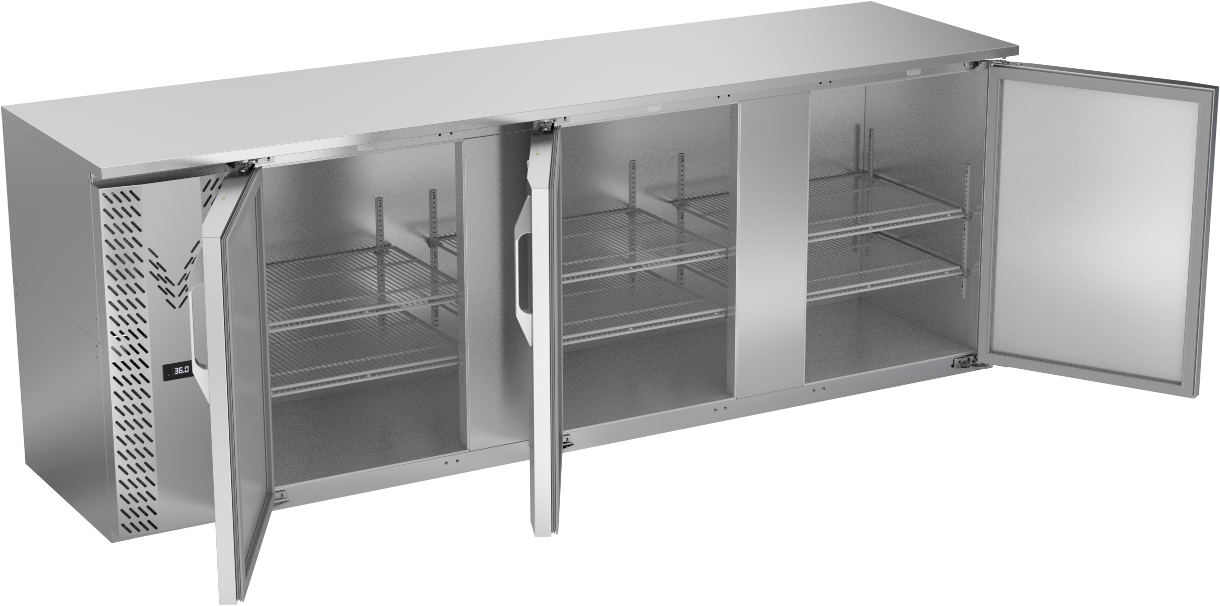 VBBN94HC-F-S | 94" Narrow Depth Solid Doors Food Rated Back Bar in Stainless Steel