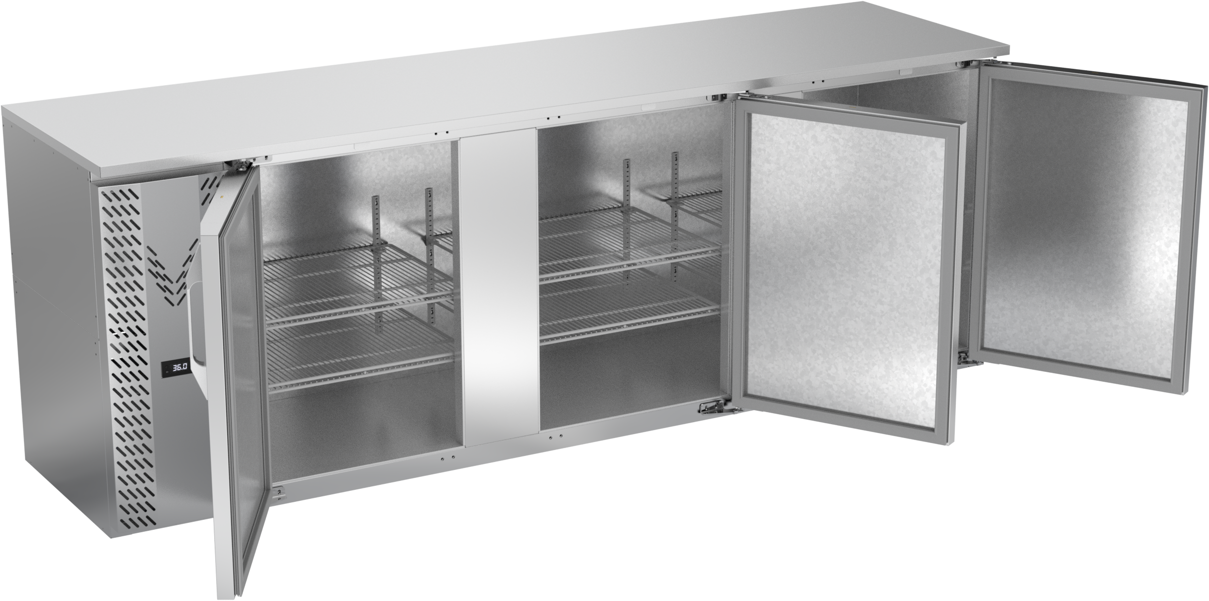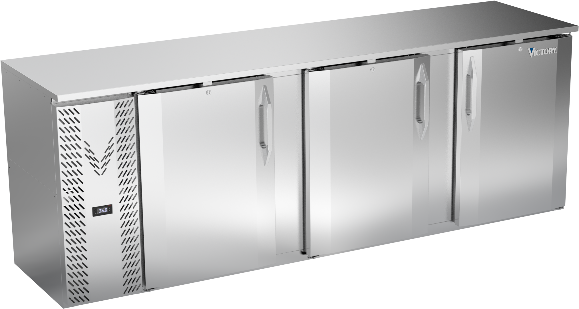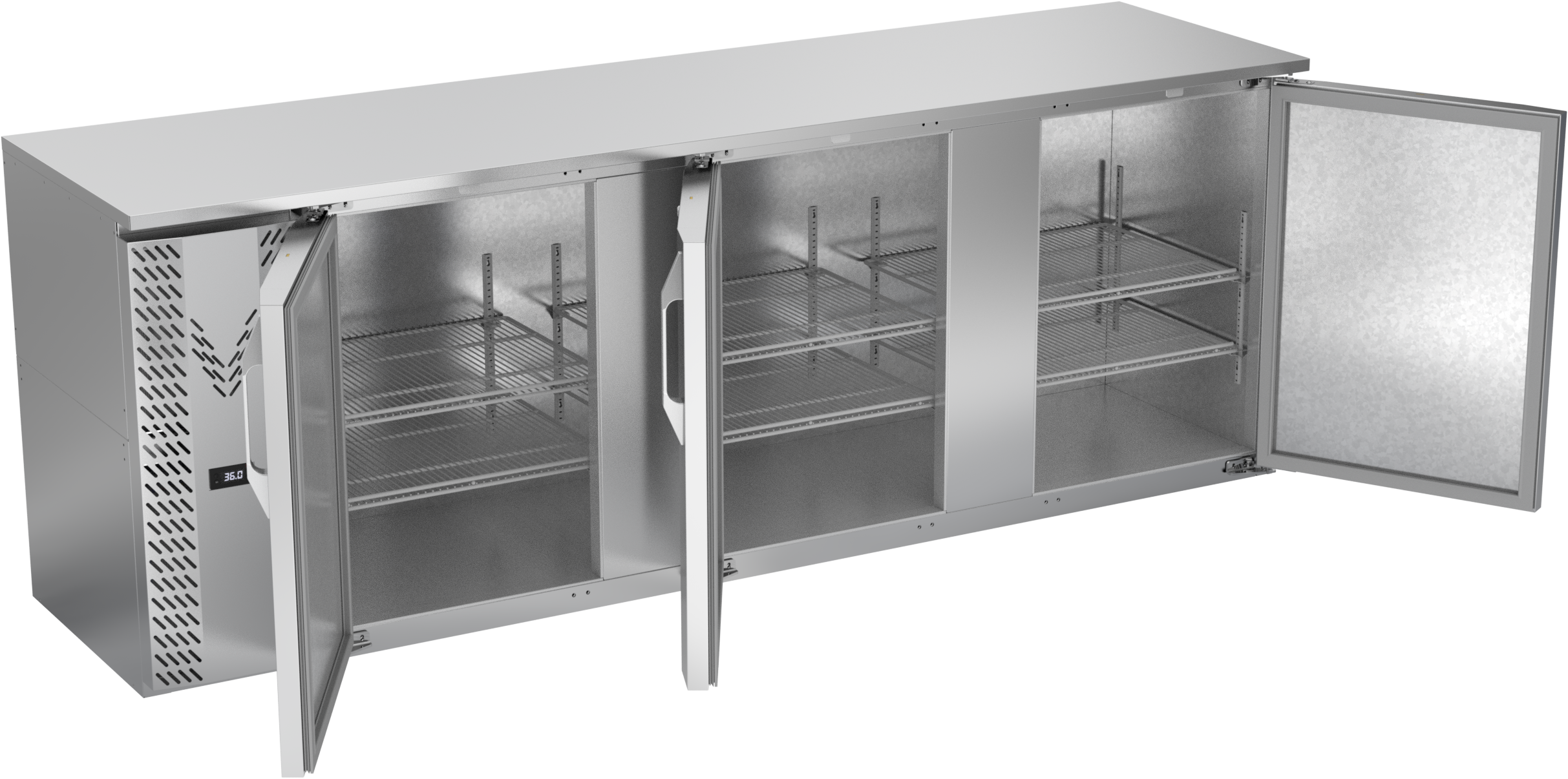 VBBN94HC-S | 94" Narrow Depth Solid Doors Back Bar in Stainless Steel