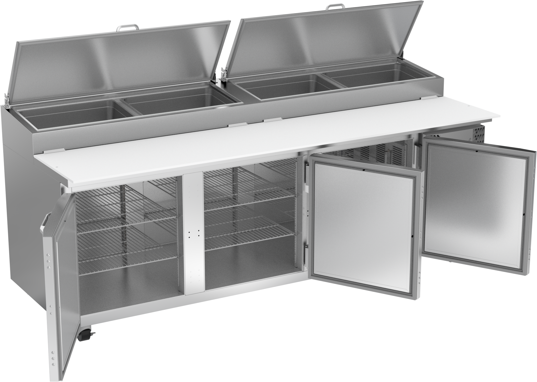 Available in door or drawer configurations, door models are set on cartridge style hinges, with a stay-open feature for easy product loading. Door and drawer configurations have a one-piece, snap-in gasket. Both pan opening and lower drawers (drawer units) accommodate 6-inch deep food service pans with locking divider bars and a removable 19-inch cutting board for quick and easy cleaning.