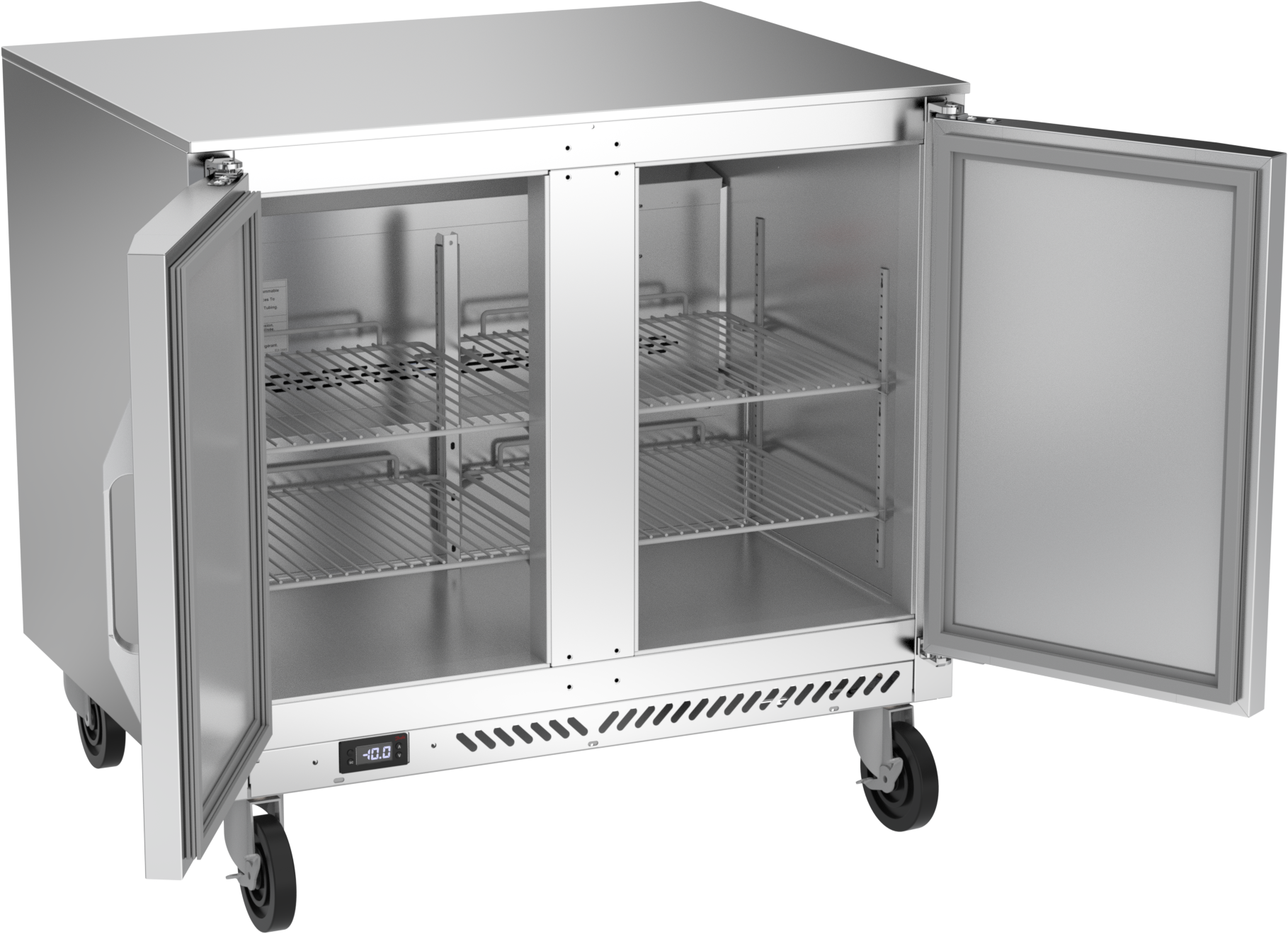 The high-performance refrigeration system uses R290 refrigerant to comply with all environmental concerns. Both side and rear-mounted refrigeration systems are available, giving the end user the flexibility to utilize the models that best fits their kitchen needs. With an epoxy-coated coil to help extend the life of the refrigeration system, each model comes standard with adaptive defrost, a feature that will reduce energy consumption by only going into defrost when necessary. This allows for more consistent temperature stratification and quicker cabinet pull down. Refrigerator models are capable of maintaining product temperatures of 36°F to 38°F. Freezer models maintain temperatures of -10°F.